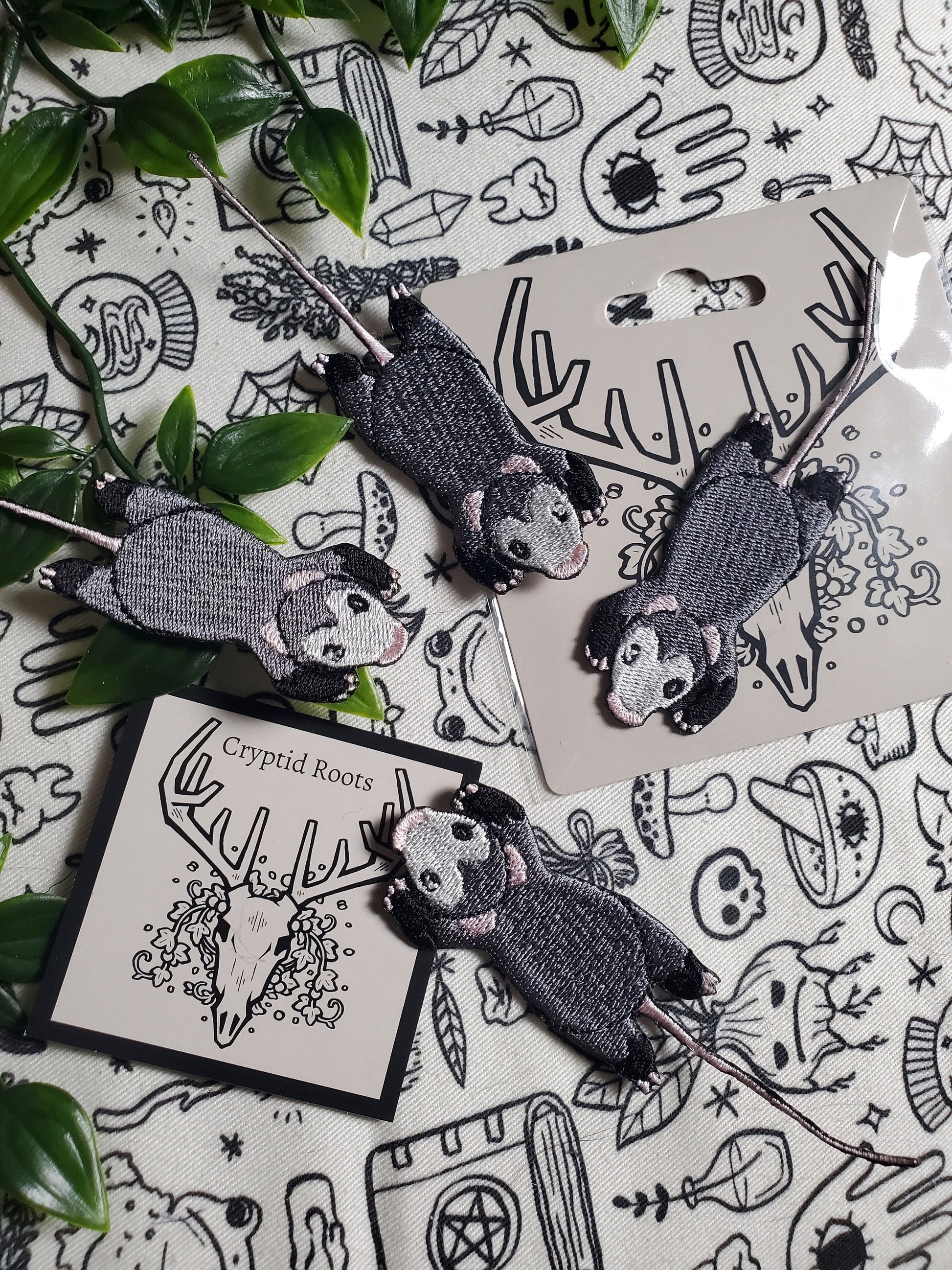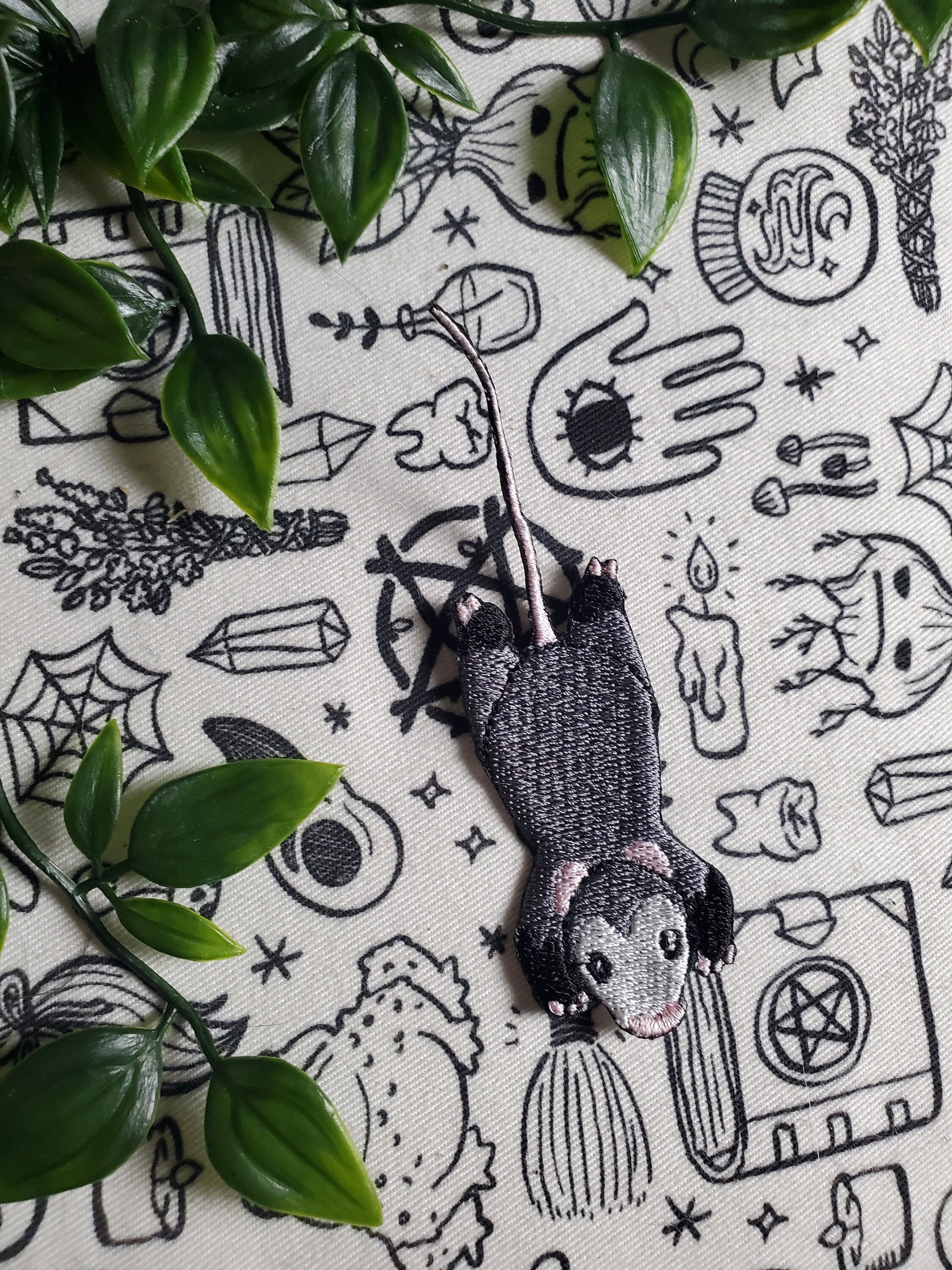 An opposum patch designed by BurntRamenCup, selling with permission. This patch is available from either of us.
